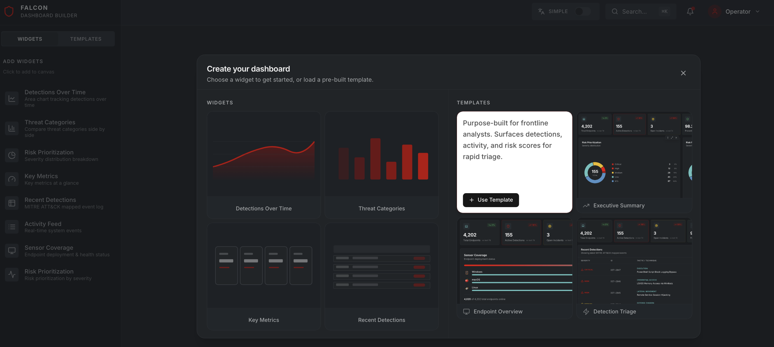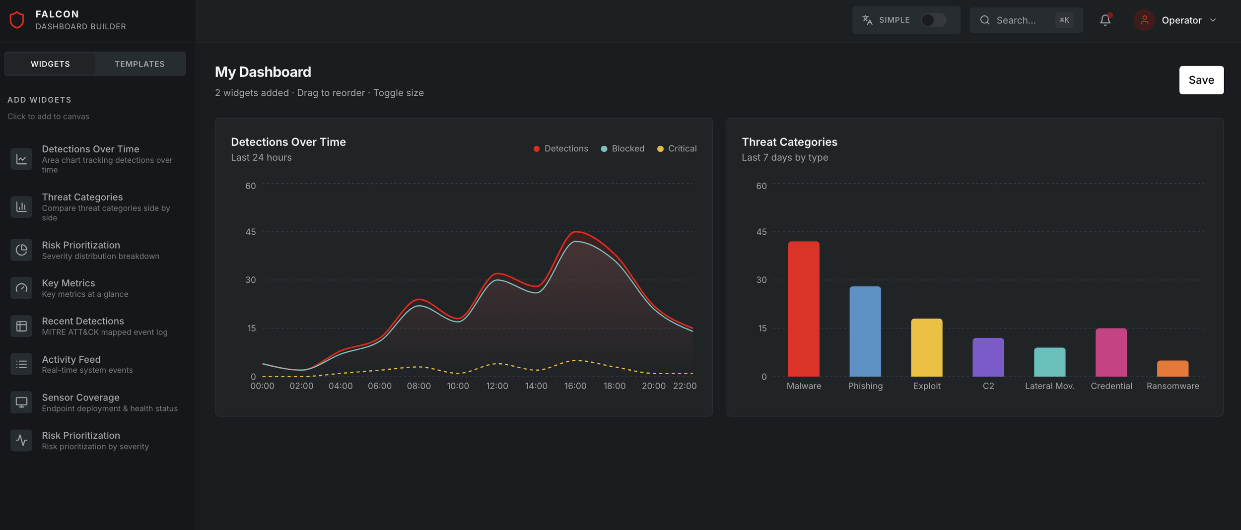 Security teams lacked a composable way to visualize key metrics (detections, incidents, sensor health, MITRE mappings) in a unified interface. Existing dashboards were: